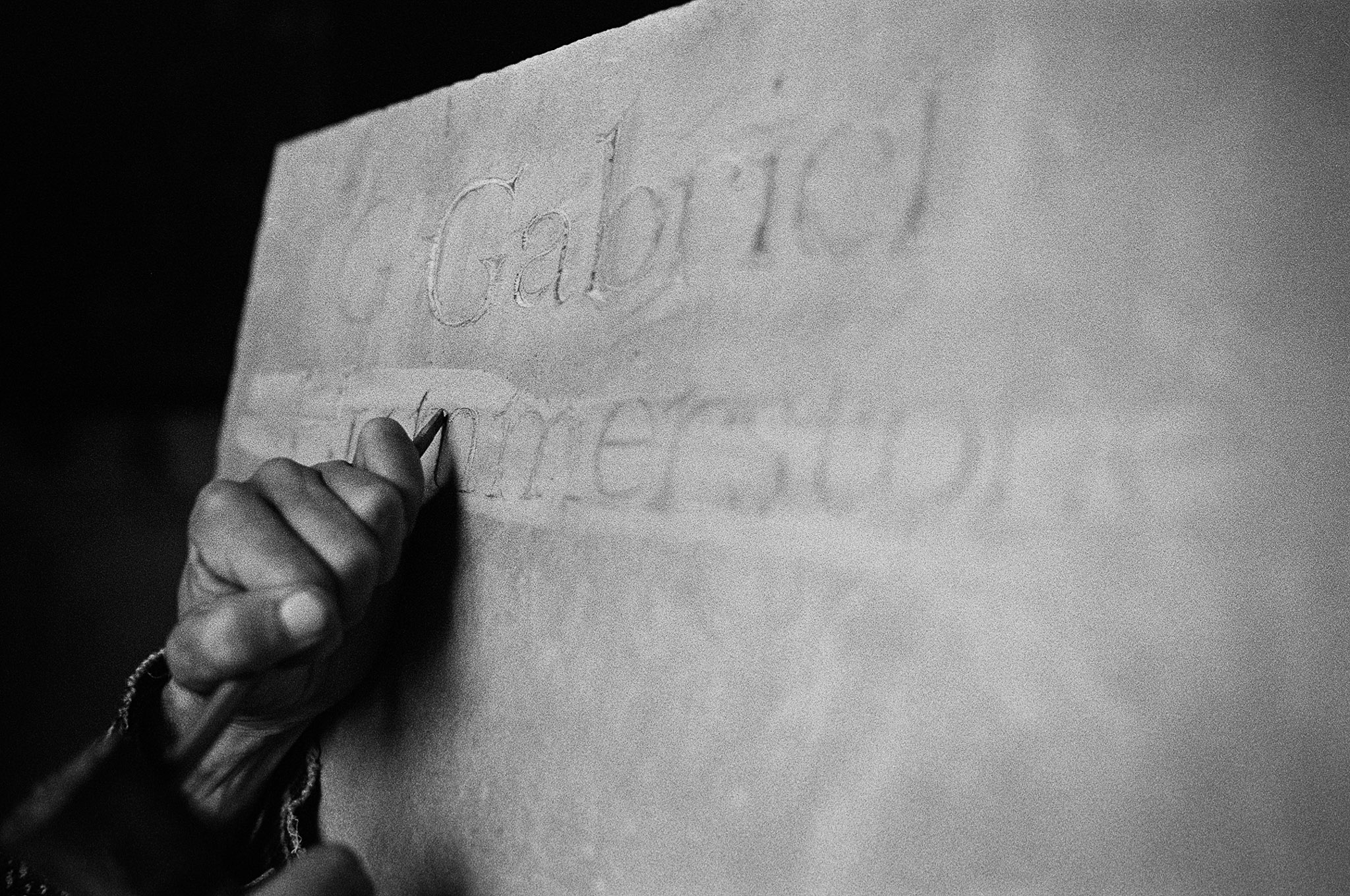 It’s a curious thing, to head to Wales to document a friend carving their own gravestone, but that’s what Gabriel is; a curious friend.